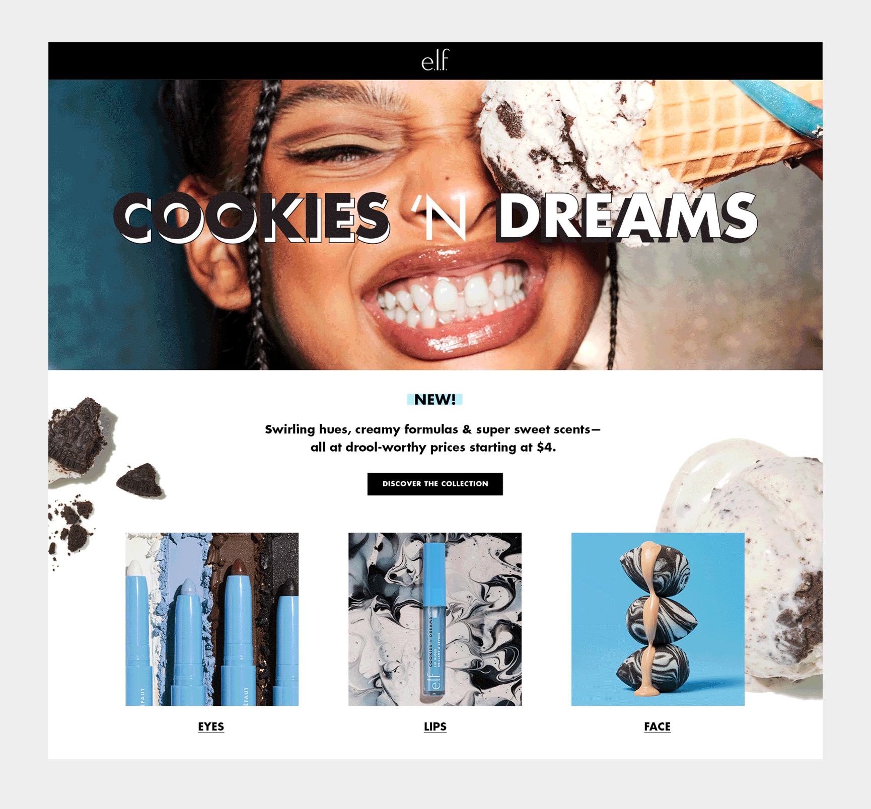 It’s a batch made in heaven! Introducing the new limited-edition Cookies ‘N Dreams collection. Inspired by crumbled chocolate cookies swirled with creamy ice cream, this collection features 13 clean beauty products that will satisfy your sweet fixation. Get the whole scoop at drool-worthy prices starting at $4.